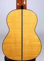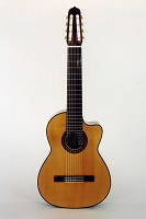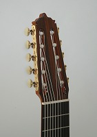 さて、これまで愛用してきた井田英夫氏作の14弦ギターは10弦ギターをベースに作られたものであることから、同氏の10弦ギターには大きな期待を持っていました。完成したギターを実際に手にしてみて、期待以上の満足が得られました。最初に驚いたのは弦を押さえやすくなり、セーハがずっと楽になったことです。また低音弦は大変しっかりした音を出すことができ、高音弦と低音弦の音のバランスが非常に良いことも特筆されます。