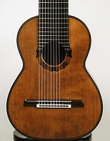 私は、井田英夫氏1987年作の14弦ギター(13コースのバロックリュート調弦にさらに低音側に1本追加したもの)を30年以上愛用しております。仕事をしていた頃はなかなかギターを弾く暇がありませんでしたが、定年退職して時間ができたため、井田英夫氏に10弦ギターの製作をお願いしました。なぜ10弦ギターにしたかというと、ルネッサンスリュートの曲と、J.S.バッハのリュート曲を弾きたかったことが理由です。